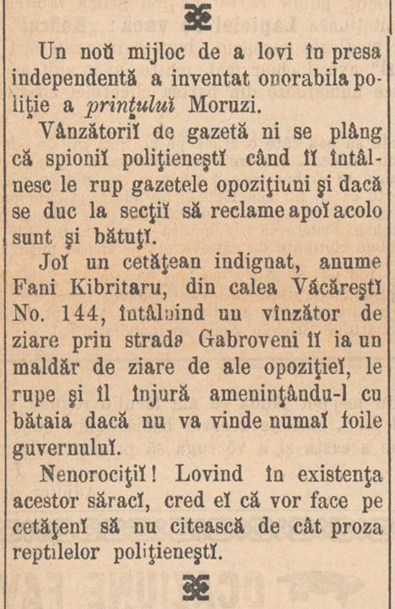 La 1887, conform ziarului „Lupta”, distribuitorii de foi luau bătaie pentru că vindeau publicații ale opoziției.