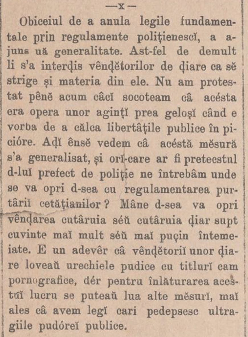 La 1885, o ediție de august a ziarului „Românul” informa că vânzătorii ambulanți de ziare nu mai aveau voie să-și strige materia.